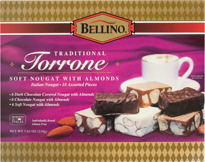 Bellino Torrone Nougat Candy is made with only the finest natural ingredients and no preservatives, making it a true old-world favorite. An assortment of vanilla, chocolate and chocolate covered torrone candies.